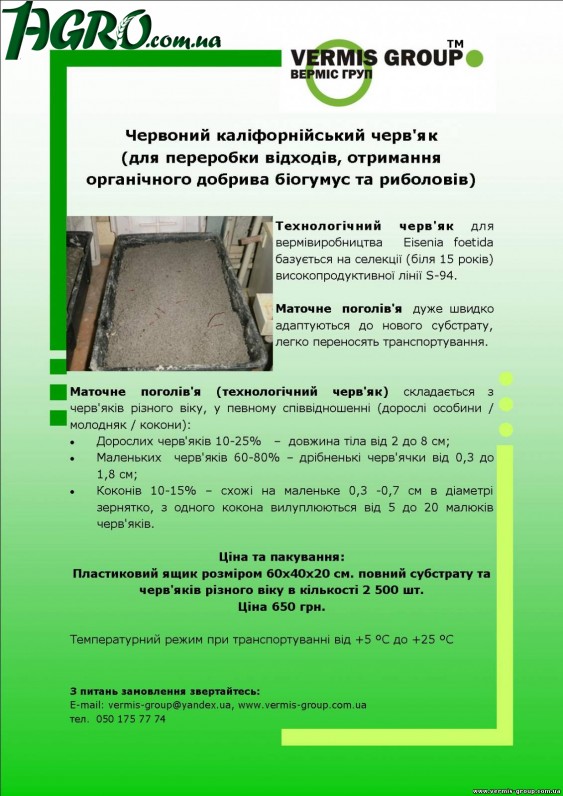 Комбикорма Торговая марка «Хлебная Гавань» представляет высококачественные полнорационные комбикорма и БВМД для всех видов животных, птицы и рыбы. Комбикорма не содержат антибиотиков, гормонов и искусственных стимуляторов роста! Профессиональное сопровождение, готовые комбикорма и индивидуальные рецепты по просьбам заказчиков. Вся продукция и цены на сайте: www.bread-harbour.com.ua или по тел. 050-390-69-48. 16:00 25.06.2012 реализуем масло подсолнечное 1й сорт Реализуем масло подсолнечное 1 сорт нерафинированное (наливом). Автор: Ирина Контактний тел.: +380676382434 E-mail: 008@agrostilplus.com.ua Область: Дніпропетровська область 12:26 25.06.2012 Производитель комбикормов ООО «ЗГК» - один из современнейших заводов на Украине по выпуску полнорационных гранулированных и экструдированных кормов для выращивания товарной рыбы и животных всех пород и возрастных групп. Автор: Контактний тел.: 095- 23004 18; 067- 834 29 71 E-mail: asv615@i.ua Область: Дніпропетровська область 11:11 22.06.2012 Комбикорма Торговая марка «Хлебная Гавань» представляет высококачественные полнорационные комбикорма и БВМД для всех видов животных, птицы и рыбы. Комбикорма не содержат антибиотиков, гормонов и искусственных стимуляторов роста! Профессиональное сопровождение, готовые комбикорма и индивидуальные рецепты по просьбам заказчиков. Вся продукция и цены на сайте: www.bread-harbour.com.ua или по тел. 050-390-69-48. 09:13 21.06.2012 Продам станок для фасовки сипучих круп(мука, цукор...) Продам станок для фасовки сипучих круп(мука, цукор...) в паперові мішки до 5 кг. Тел. 093-656-999-3 Діма (м.Івано-Франківськ) Автор: Контактний тел.: 093-656-999-3 Область: Івано-Франківська область 22:26 20.06.2012 Верми ферма Верми ферма для переработки органических отходов на дачах и приусадебных участках, производства удобрений 16:41 19.06.2012 Красного калифорнийского червя Предлогаем красного калифорнийского червя, для производства органических удобрений, переработки отходов, рыбалки 16:39 19.06.2012 Продам саженцы грецкого ореха Продам саженцы грецкого ореха на осень 2012 г. Однолетние - 7 грн. Двухлетние - 10 грн. Николаевская обл. тел. 0964110668 0993331901 Евгений 16:11 17.06.2012 Рыбная мука Автор: Олег Анатольевич Контактний тел.: 067 562 14 16 E-mail: ukr.agrotech1@gmail.com Область: Дніпропетровська область 10:05 13.06.2012 Лічильники пального Пропонуємо лічильники і датчики дизельного пального VZO, DFM для контролю витрати палива на різних видах техніки. Системи GPS моніторингу техніки без абонплати.<BR>http://www.inteh-pro.com.ua/ Ціна: 3200,00 грн. Автор: Шмиголь Ірина Контактний тел.: +38-067-470-70-36 E-mail: monittrans@rambler.ru Область: усі області 11:12 07.06.2012 продам висівки пшеничні продам висівки пшеничні від виробника 16:01 30.05.2012 воздушные фильтры Virgis Компания «ТД ИРБИС» предлагает воздушные фильтры производства VIRGIS для техники CASE/NEW HOLLAND (87741569 CASE / 87741560 CASE). 09:11 29.05.2012 Рибний комбікорм Продаєм рибний комбікорм для 2-3 річок ставкових Карпових риб. 1500, 1650грн. Приймаєм замовлення на виготовлення комбікормів для С/г тварин та риб по індивідуальеним рецептам Ціна: 1500-1650 14:40 28.05.2012 сторінка Попередня 1 ... 568 569 570 571 572 573 574 575 576 ... 580 Наступна | ![]()